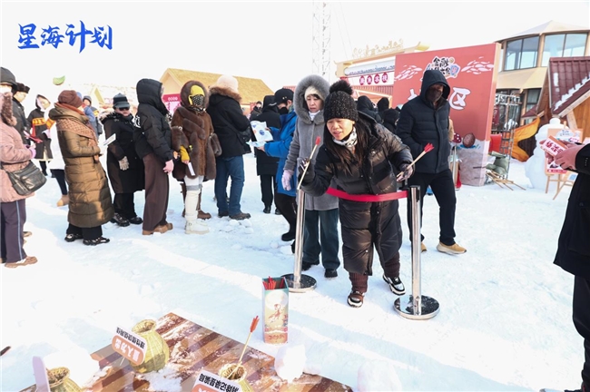 查干湖冬捕正值旺季,湖面银装素裹、鱼市人声鼎沸,吸引了大量游客和当地居民。活动延续“市集+金融”的创新模式,结合冬捕文化元素,设置多个互动式金融知识宣传摊位,通过趣味游戏、现场讲解等形式,引导群众在参与中学习防范金融风险的实用知识。